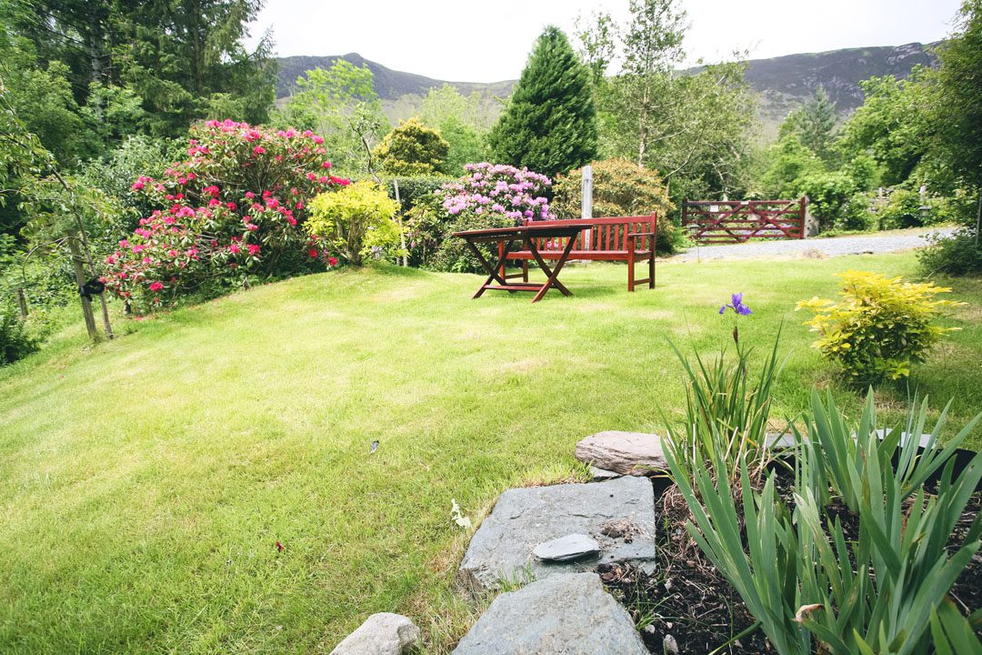 • Second double bedroom with side tables, chest of drawers and views over side lawn to Catbells/High Spy range.